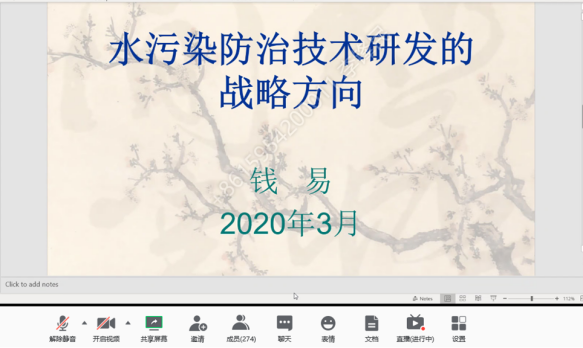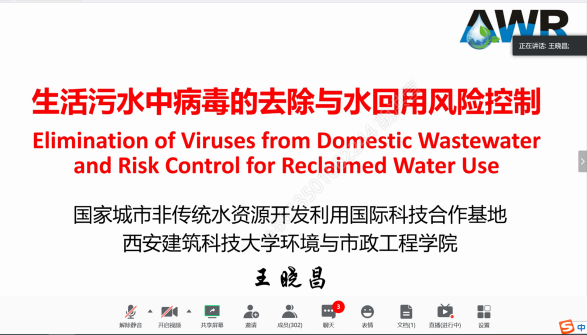 教授王晓昌做学术报告。国内外高校的研究生和留学生、水环境领域的教师、学者、专家和工程技术人员等约3300人在网络会议室或通过观看直播的方式参加了会议。